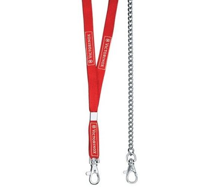 Chaque couteau « Mon Premier Victorinox » est livré dans une boîte cadeau avec un cordon porte-badge et une chaîne gourmette à 2 mousquetons en acier nickelé.