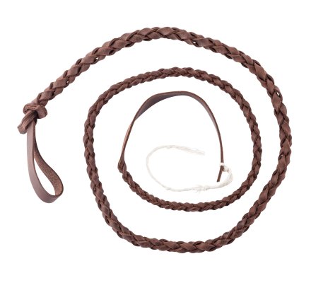 Avec un tressage serré en cuir de qualité, elle offre à la fois souplesse, résistance à l’usure et résonance optimale lors de l’utilisation. Elle est proposée en deux longueurs totales — 147 cm ou 185 cm — incluant les 20 cm de ficelle finale, afin de convenir à différentes pratiques et préférences de maniement.