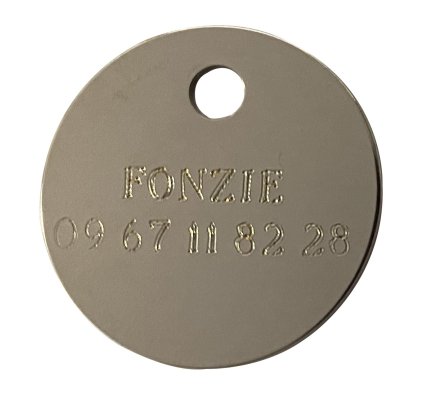 La taille de ce médaillon peut tout à fait recevoir la gavure de votre choix. Un petit cadeau très utile pour le chien d'un ami ou pour le vôtre.