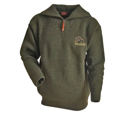 Un incontournable dans l'équipement du chasseur de grand gibier, le pull chasse avec broderie représentant un sanglier. Chaud et confortable, ce pull chasse est pratique avec son col montant à fermeture zippée.