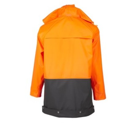 La veste de pluie de la gamme Flex est 100% imperméable, composée de 50% polyuréthane et de 50% PVC. Doublée d'un support tissé polyester, elle améliore le drainage de la transpiration et la condensation.